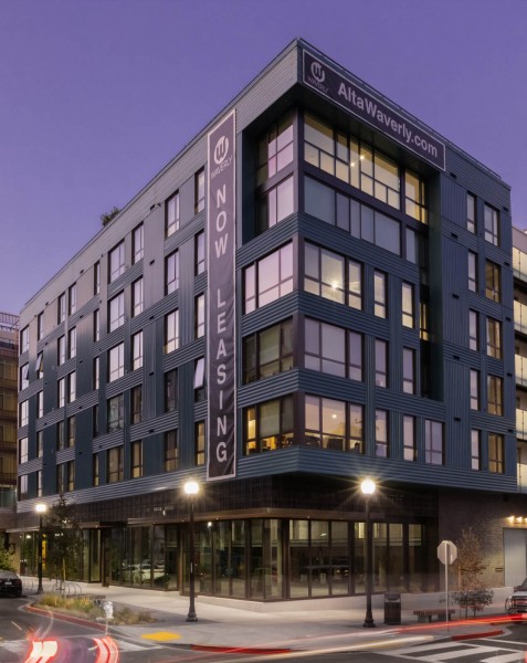 The 469,533 SF development features 349 apartment units, 236 above-ground parking stalls (levels 2-5) and 14,277 SF of ground floor retail space. The structure is uniquely built around and over top of the existing above grade entrance for the underground parking across 2nd Ave to the West. A dog run is located on the 16th floor and 2,800 SF of amenity space is located on the 20th floor.
