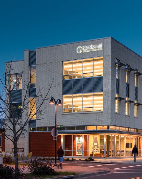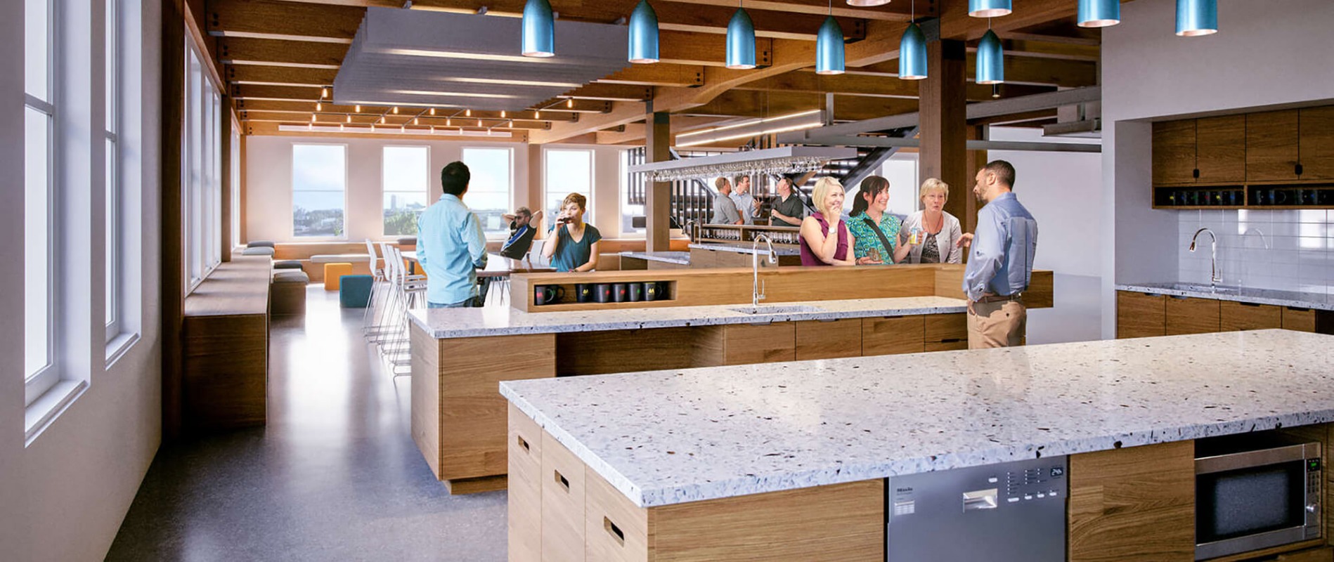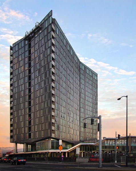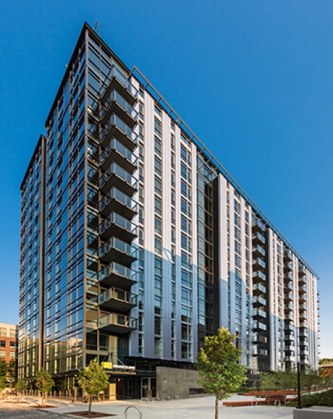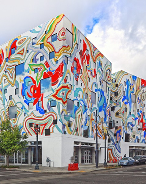 The LEED Gold wood-framed structure includes ground floor leasing for the University of Oregon and 4,125 SF of retail space. Floors 2-4 are office space, including the headquarters of Ankrom Moisan Architects. Floors 5-6 include 65 apartment units. The 141,362 SF building features an exterior skin of brick, plaster and metal panels. The project is the first LEED 4.0 certified project in Portland.