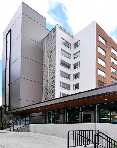 Located on a triangle-shaped lot at the south end of Capitol Hill, above the Madison Park neighborhood in Seattle, this assisted living and memory care community is inspired by the Grand Houses of Capitol Hill and Madison Park built in the early 1900’s as Seattle expanded east. The 7-level structure includes a cast in place, post tensioned concrete podium containing an underground parking garage and ground floor level common areas with retail, along with five levels of structural steel studs. 102 apartments highlight the facility (77 assisted and 25 memory care). Community spaces include kitchen & dining, spa suite, movie theater, library, 'ManCave' entertainment room, crafts room, public cafe and a rooftop sky lounge with fire pit, BBQ and 270 degree views.