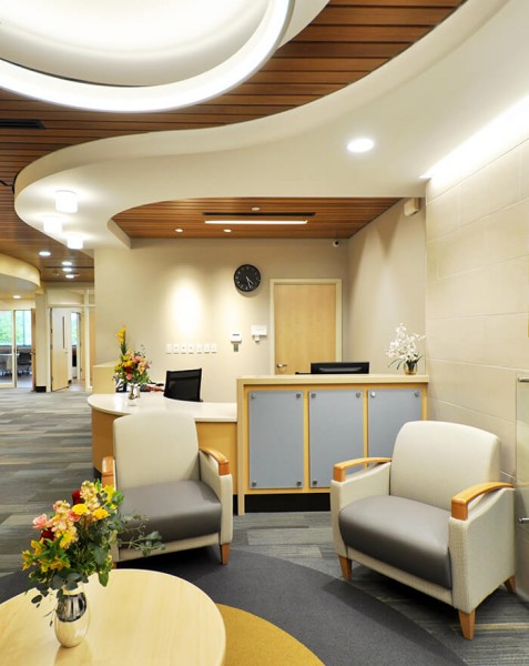 The expansion includes an upgrade to the serving kitchen, a new teaching kitchen, reception/lobby, administration offices, exam office, lab weigh-in, two group rooms, two multi-purpose rooms, IT and electrical closets, and a staff lounge.