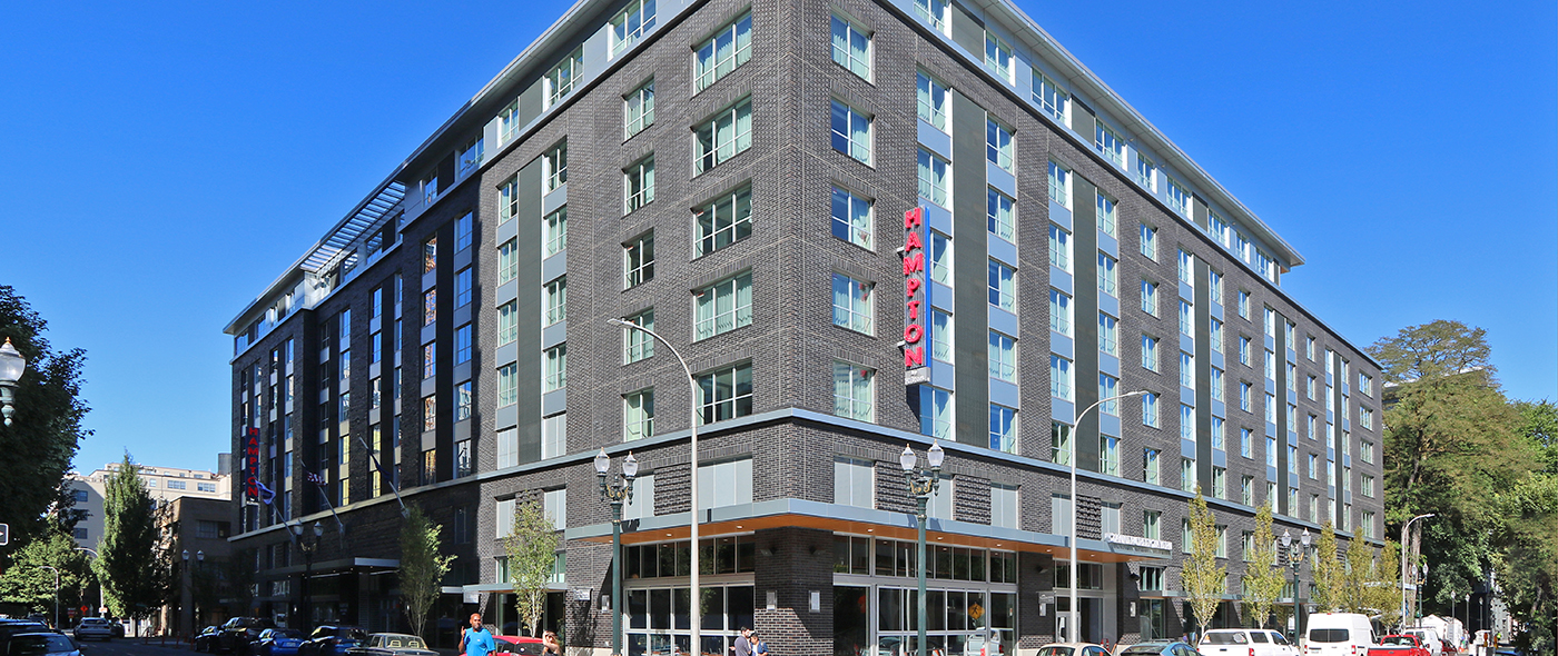 Located on 3/4 of a city block in Portland's Pearl District, the 8-story, 205,000 SF hotel features 243 guest rooms and 104 above ground structured parking spaces. The ground level includes a lobby, lounge, dining area, meeting rooms, a restaurant and retail space. Built with a light gauge steel and concrete structure, the hotel includes masonry facades with two colors of brick, plus metal cladding. The hotel uses reclaimed wood from existing onsite buildings.