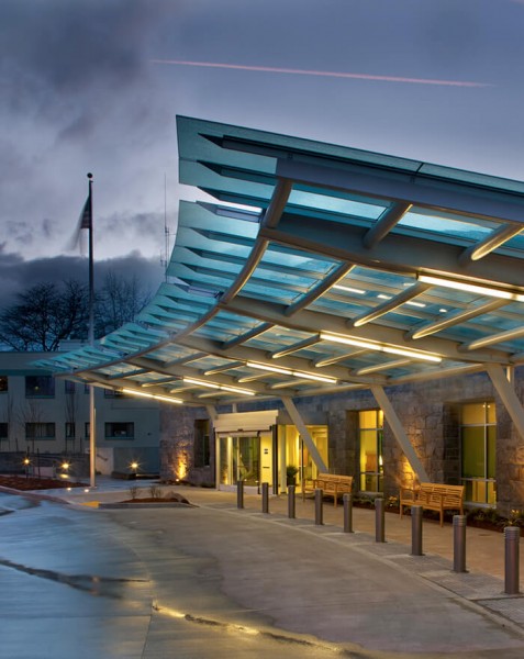 This single story expansion creates a new entrance and face for the existing Lake District Hospital.