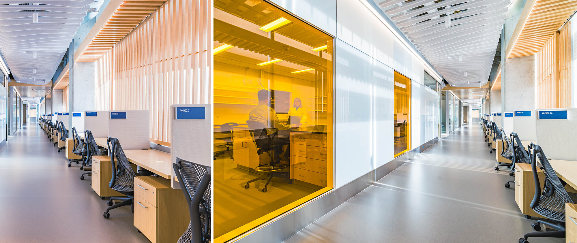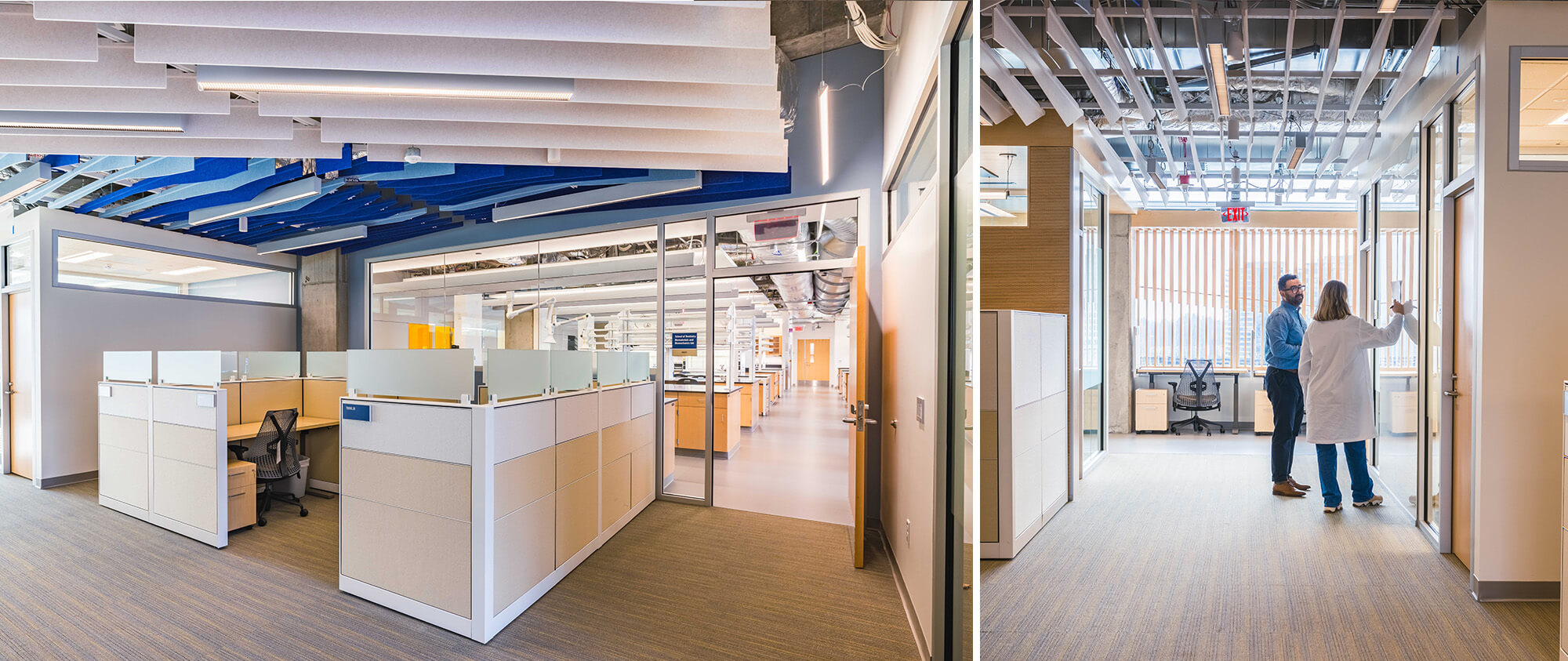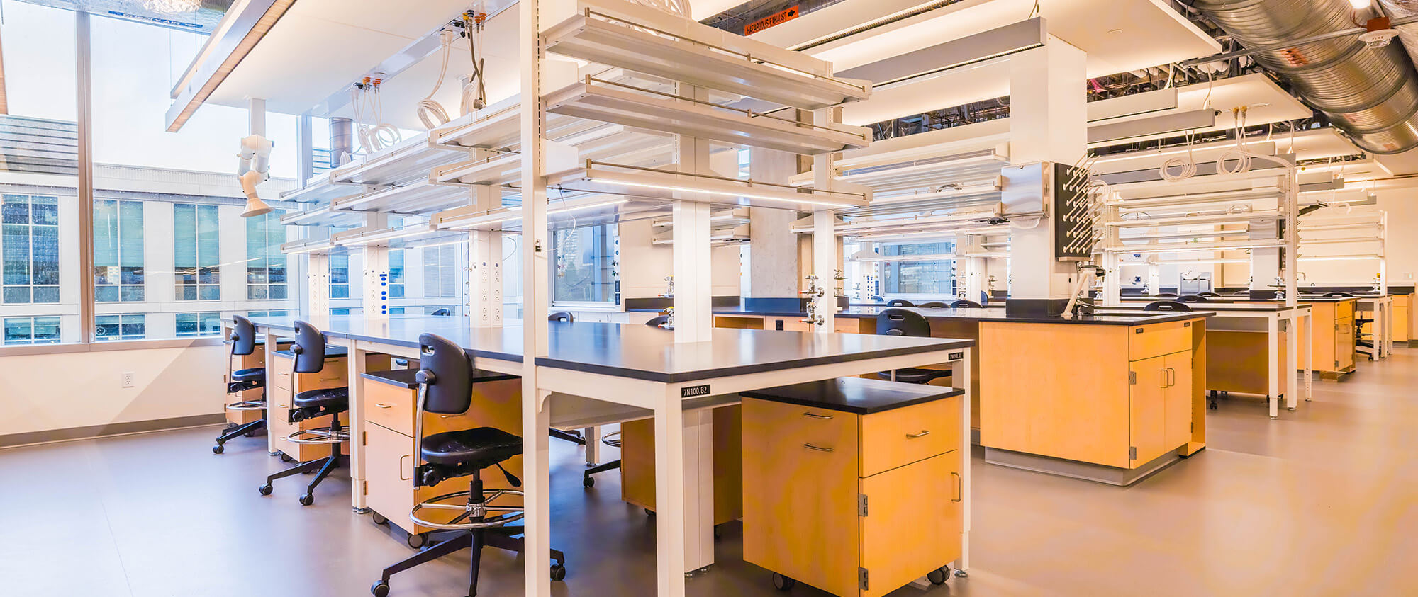 The program includes 7,000 GSF of chemistry intensive research space, another 7,000 GSF of general wet lab and associated shared core facilities, and 7,000 GSF of office and other floor amenities. Includes a Center for Experimental Therapeutics (CET), a chemistry heavy lab which includes a 400MHz Nuclear Magnetic Resonance (NMR) spectrometer, High Throughput Screening (HTS) lab, BSL-2 Wet lab space, and Tissue Culture and equipment rooms.