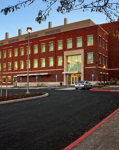This co-generation energy center facility is Oregon State’s first LEED Platinum project. The new 23,000 SF Energy Center combines heat and power capacity of 5.5 MW of electricity and 250,000 lbs per hour of steam generation capacity. The facility produces 50 percent of the electricity needed to run the campus, as well as steam to heat and provide hot water for buildings. The main equipment consists of a Gas Fired Turbine, Gas Fired HRSG and two Aux Boilers. The project also includes underground steam lines that tie into multiple campus buildings. Sustainable features include an on-site water treatment system, rainwater harvesting & re-use, passive ventilation systems for the plant, radiant heating & cooling for the occupied spaces, natural daylighting methods, low VOC materials and recycled materials.