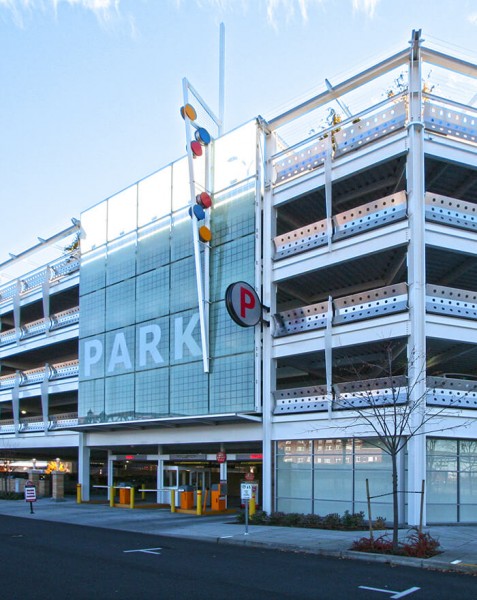 The Lovejoy public parking garage is part of a true urban mixed-use in Portland’s Pearl District. Party of 9-story, LEED Gold precast concrete structure, the 150,000 SF garage is located above a 2-story Safeway grocery store and below a 3-story Class-A office building. The garage primarily supports the grocery store and office tenants.