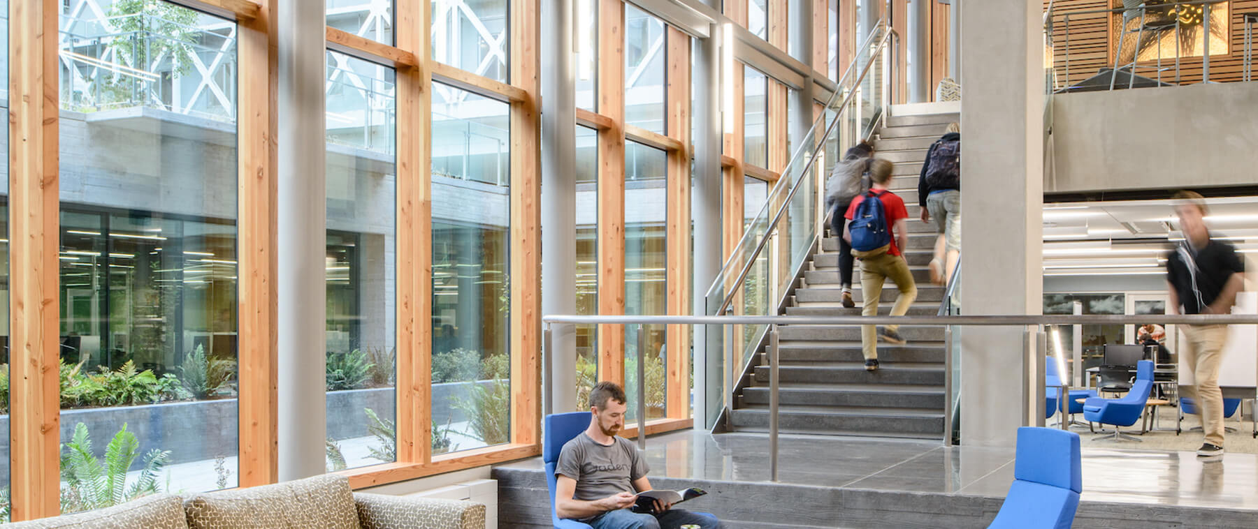 This 4-phased project includes extensive renovation of the existing subterranean science commons as well as a 3,800 SF expansion out of the existing courtyard, which houses a new café and serves as the new entry to the library.